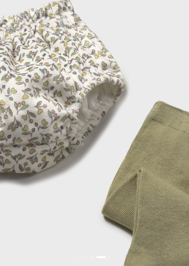 Pantalón short tipo braguita que combina a la perfección en un look perfecto para tu bebé. Cinturilla elástica. Elementos de adorno: lazo.